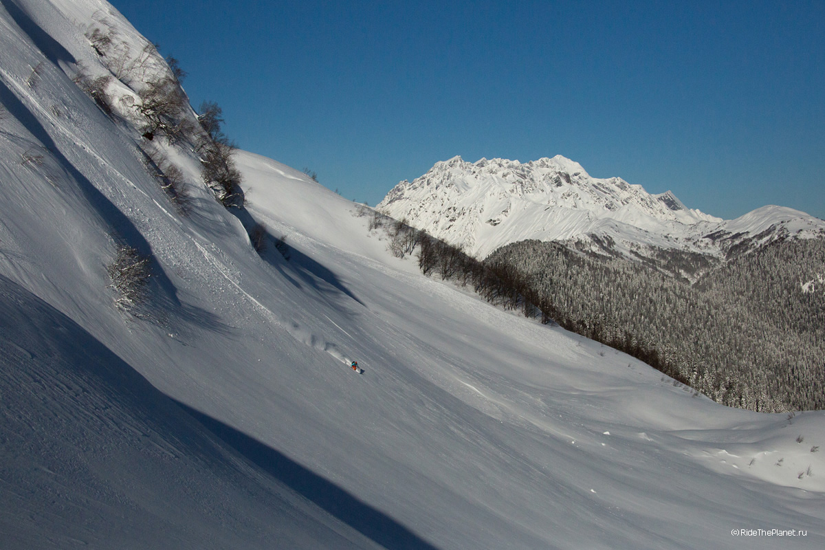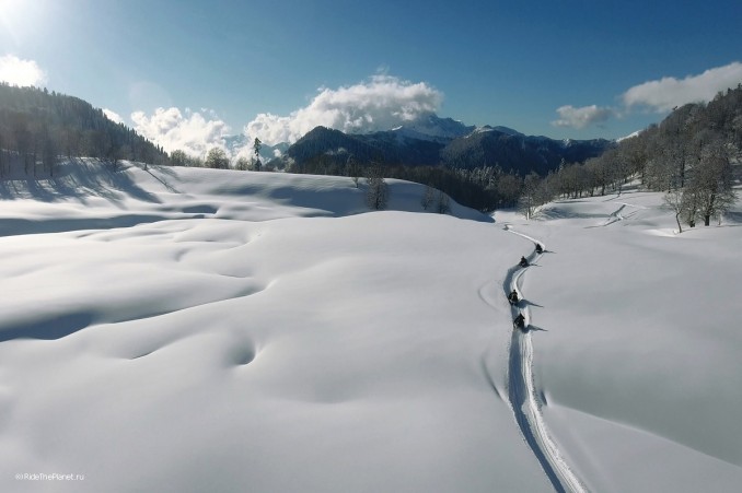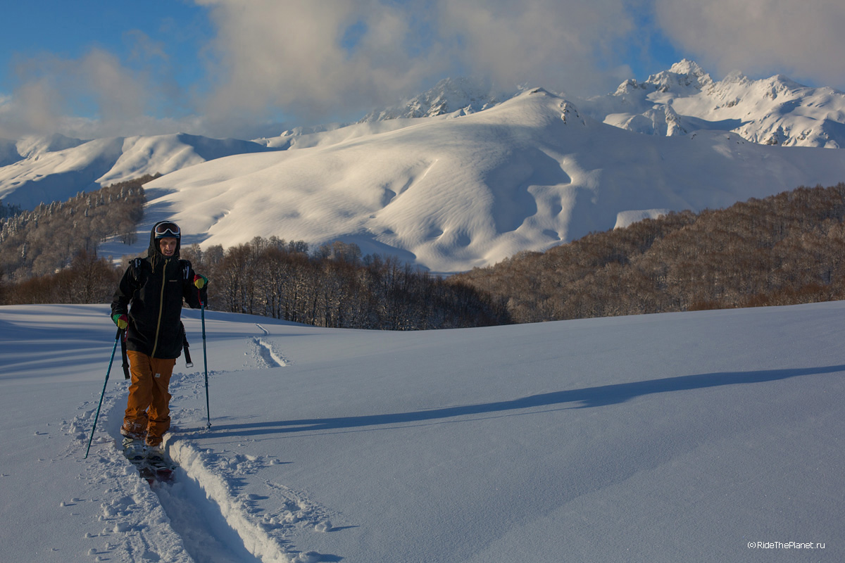 За время путешествия с командой RideThePlanet нам удалось побывать на двух горных спотах – в долине Ауатхара и на горном плато Мамзышха на высоте почти 2000 метров над Пицундой. Эти два места очень сильно отличаются по характеру рельефов, снегу и микроклимату.