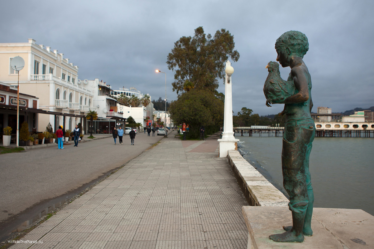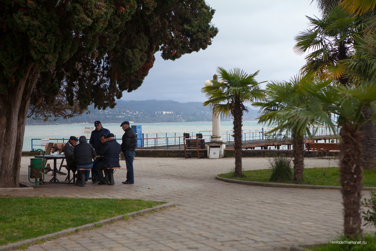 Полчаса на машине от Адлера, ненапряжный переход границы (с российским паспортом) – и всё вокруг начинает меняться. Отвесные скалы предгорий подступают прямо к морю, пальмы и бурная растительность субтропиков быстро трансформируют пейзаж. А с первыми населенными пунктами за окном становится очевидно – время здесь будто остановилось 20-30 лет назад.