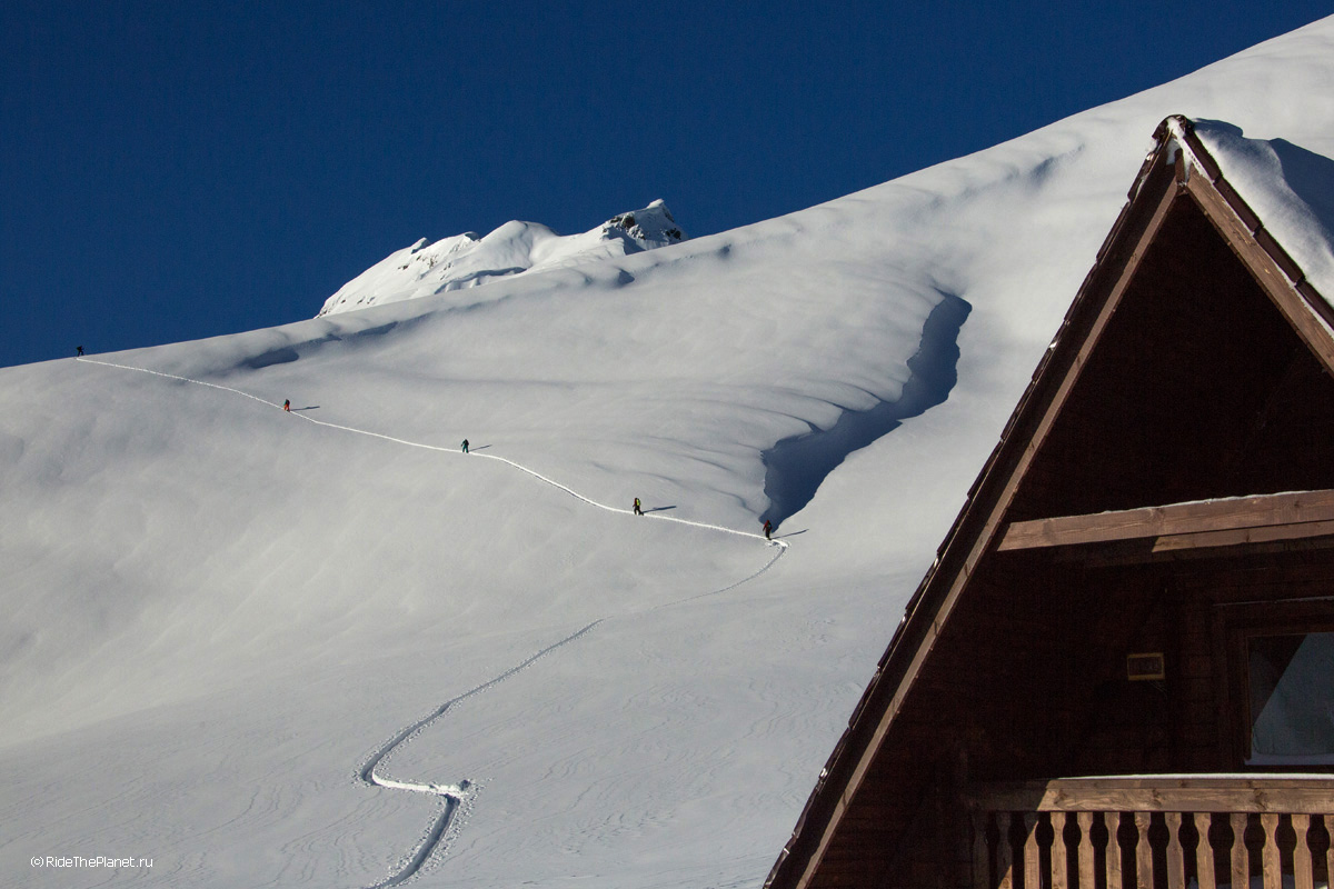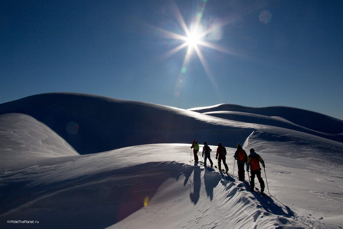 В этом районе отличные условия для скитура и фрирайда: различные экспозиции склонов и, соответственно, кондиции снега, разнообразный рельеф в альпийской и лесной зонах – можно найти линии спусков для любого уровня катания.