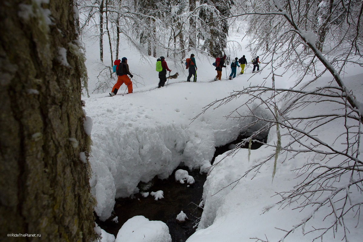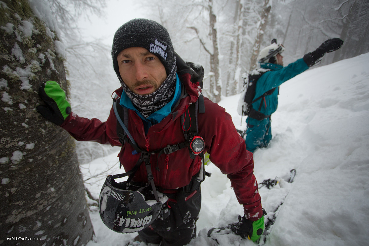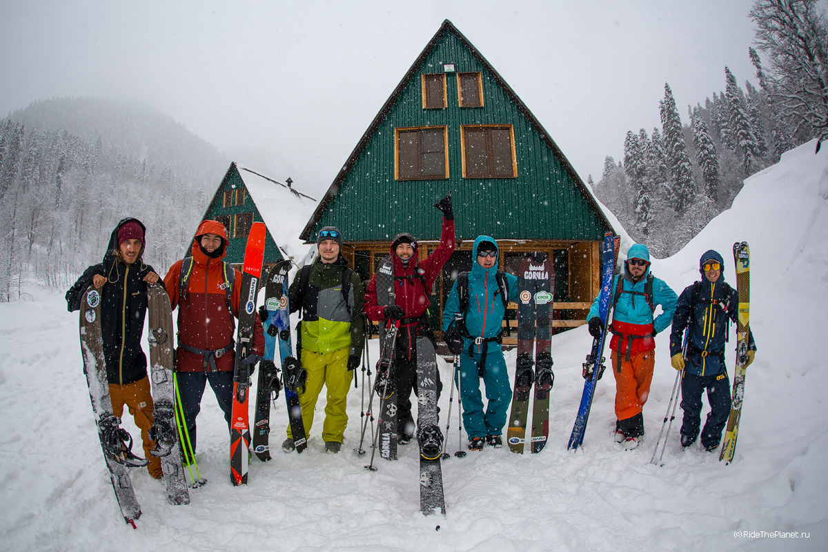 Именно в этом путешествии мне хотелось еще и показать команде проекта возможности Абхазии для зимнего аутдора, возможности региона, который мне очень близок по своей атмосфере, провести друзей по своим любимым местам, и конечно – прокатиться по линиям, на которых пока никто не бывал. Команда в горах – очень важная вещь.