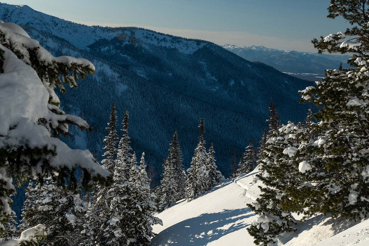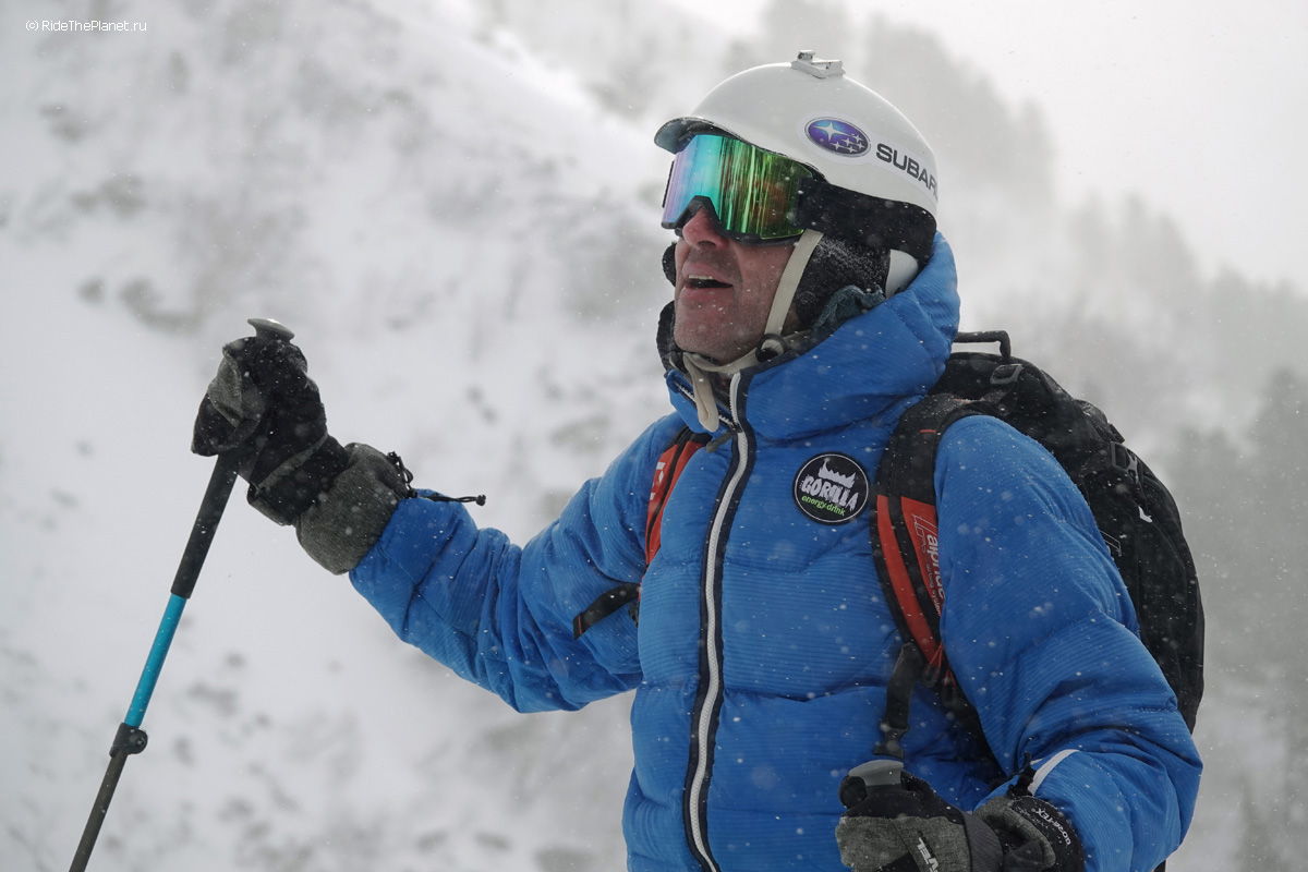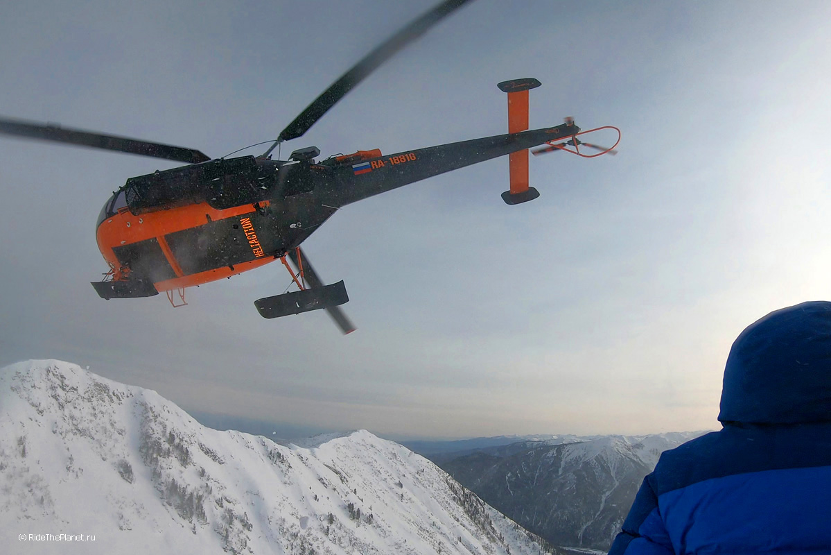 В один из дней переменчивая байкальская погода позволила нам полетать на вертолете Alouette с пилотом Александром Давыдовым, лучше узнать район и сделать несколько спусков в альпийском рельефе в удаленных ущельях.