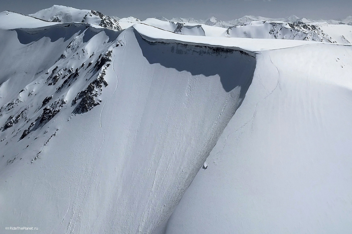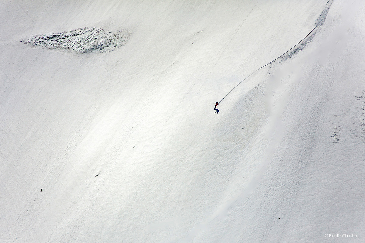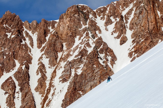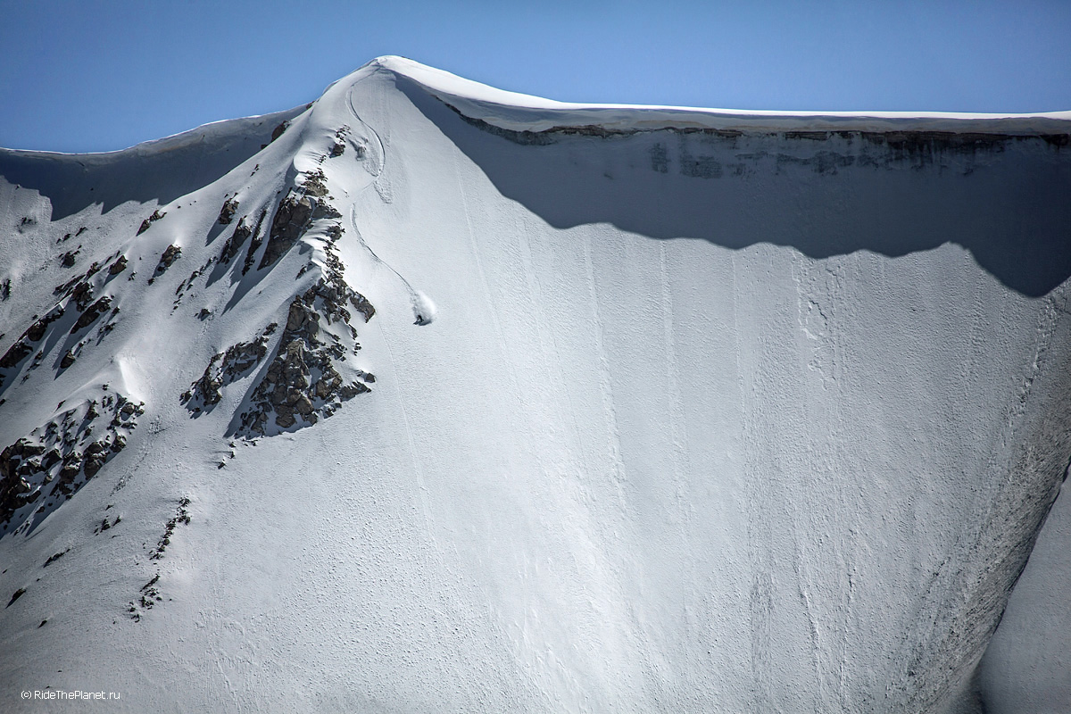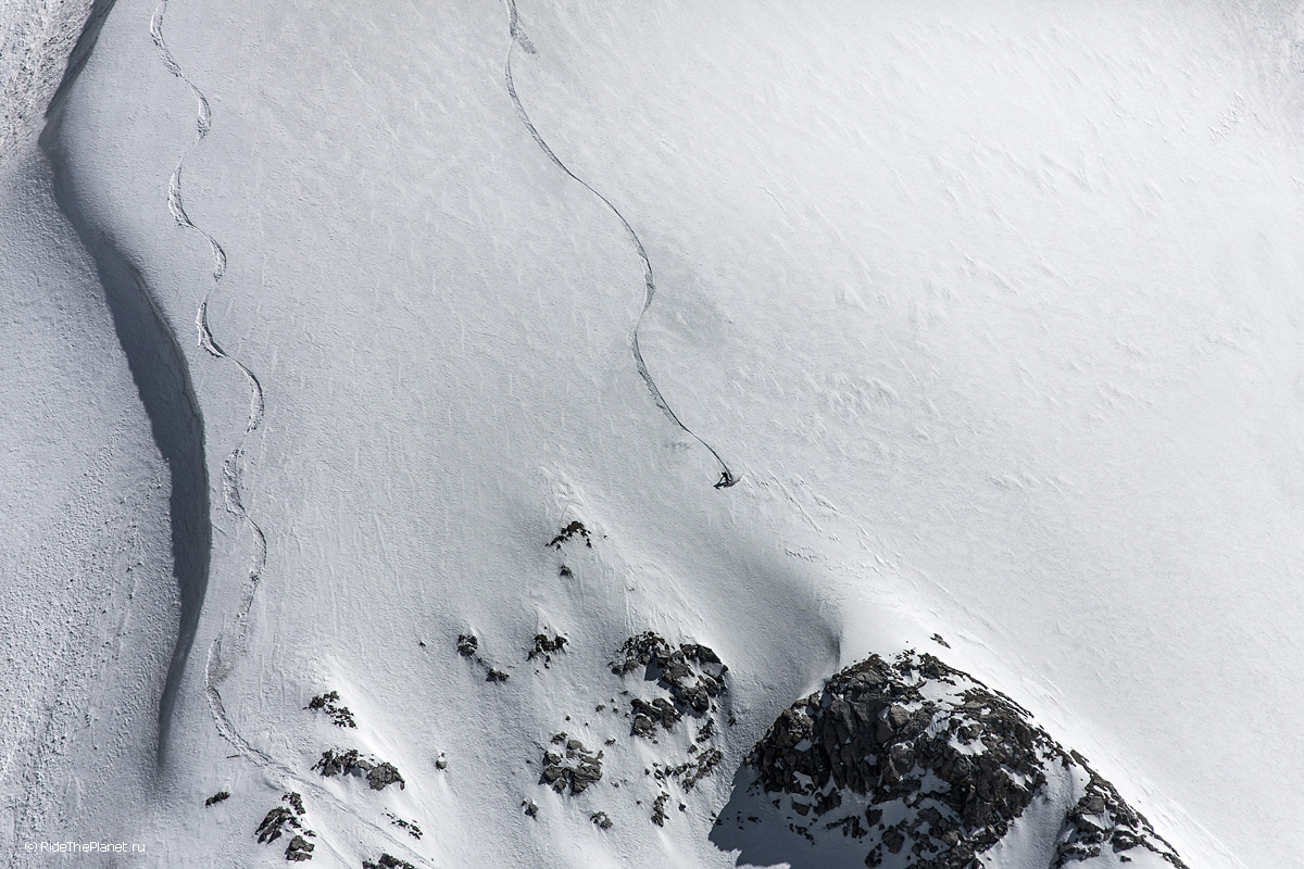Многочасовой подход к точке старта, спуски-подъемы-траверсы, глубокий снег, солнце, скалы и ветер остаются где-то в воспоминаниях после того как крепления застегнуты и ты стоишь на гребне готовый к старту. Предельная концентрация, отсчет по рации и ты скользишь вниз.