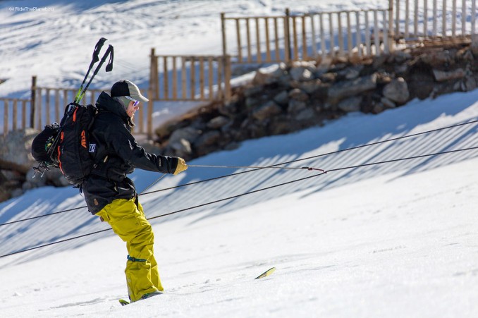 Сотрудники станции на своем энтузиазме возвели пять очередей бугельных подъемников на близлежащие склоны, поднимаясь на которых, многие из нас вспомнили свое горнолыжное детство. Бугеля – весьма необычная на такой высоте, но очень удобная опция. Поднимаясь по утрам на этих простейших подъемниках на гребень мы экономили массу сил для дальнейших походов к местам катания и съемок в соседних от Космостанции цирках и ущельях.