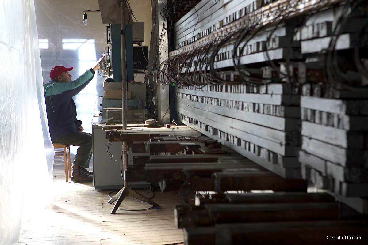 Меня особенно поразила стоящая в одном из самых больших ангаров станции огромная установка для изучения частиц темной космической материи. Как нам рассказали сотрудники, эту установку придумали, разработали и построили японские астрофизики совместно с российскими учеными. Регулярные исследования на ней были приостановлены после трагедии на японской Фукусиме. Установка законсервирована и ждет своего времени.