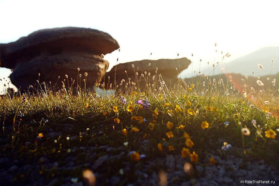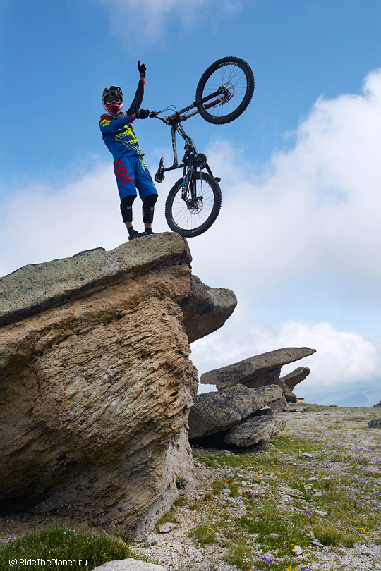 В хорошую погоду мы практически полный день проводили в горах в поисках рельефов для катания и съемок, проходили и проезжали на велосипеде много километров, вертикальных и горизонтальных.