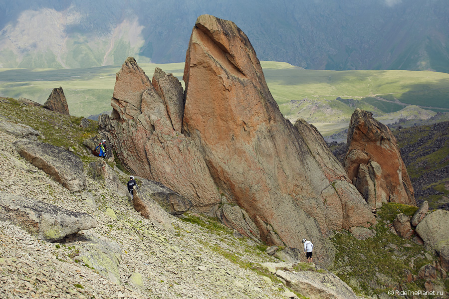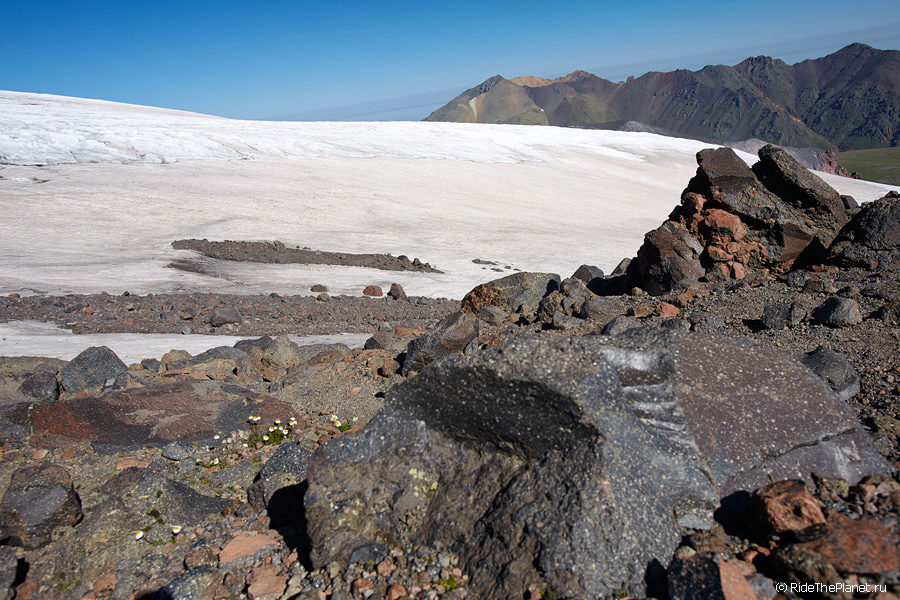 Награда за тяжелый из-за разреженного воздуха подъем на высоту почти 4 000 м – это, безусловно, то, что открывается глазам. Лунные ландшафты вулканических морен, километры тысячелетних льдов, укрывших спящий (пока?) великан Эльбрус. Ледниковые озера, лежащие выше облаков и рождающие реки, которые многими километрами ниже пробивают гигантские каньоны и несутся полноводными потоками к морю… Со склона горы на 360° не увидишь никого – и словосочетание «другая планета» будет лучшим описанием. А много ли вариантов дойти на другую планету своими ногами, да еще и прокатиться по ней?