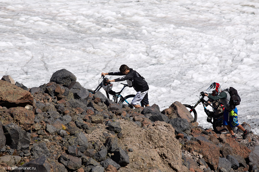 Команда RideThePlanet начала съемки очередного фильма, посвященного горному велосипеду в формате Bigmountain и переместилась в горы Кабардино-Балкарии, в Северное Приэльбрусье. Команда проекта в этом путешествии: MTB-райдеры — Николай Пухирь, Петр Винокуров и Виталий Хрипунов, съемочная группа — Константин Галат и Олег Колмовский, фотограф Людмила Звегинцева и Глеб Ермолаев. Первую часть этого путешествия в Северном Приэльбрусье было решено провести в экспедиционном формате — команда разбила свой базовый лагерь на морене, непосредственно под ледниками Эльбруса на высоте 3200 метров в одном из живописнейших мест этого района — под названием «грибы».