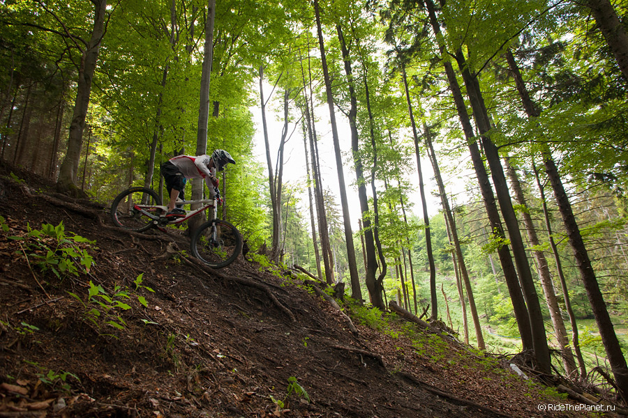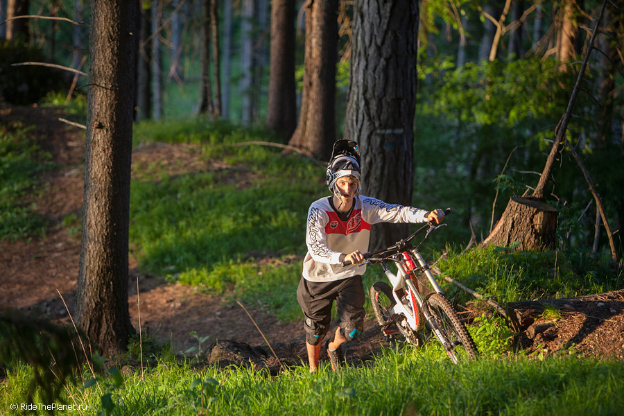 Для основной нашей задачи – катания в формате downhill – наличие горнолыжного подъемника было одним из важнейших факторов. И по совету местных райдеров для катания и съемок был выбран Ружомберок – горный городок с лыжным центром Malino Brdo. В нём нашлось все, что нужно для катания на маунтинбайке – подъемник, байк-парк, лесные маршруты и альпийская каменистая зона, свободная от деревьев – в районе Ружомберока мы не скучали несколько дней.