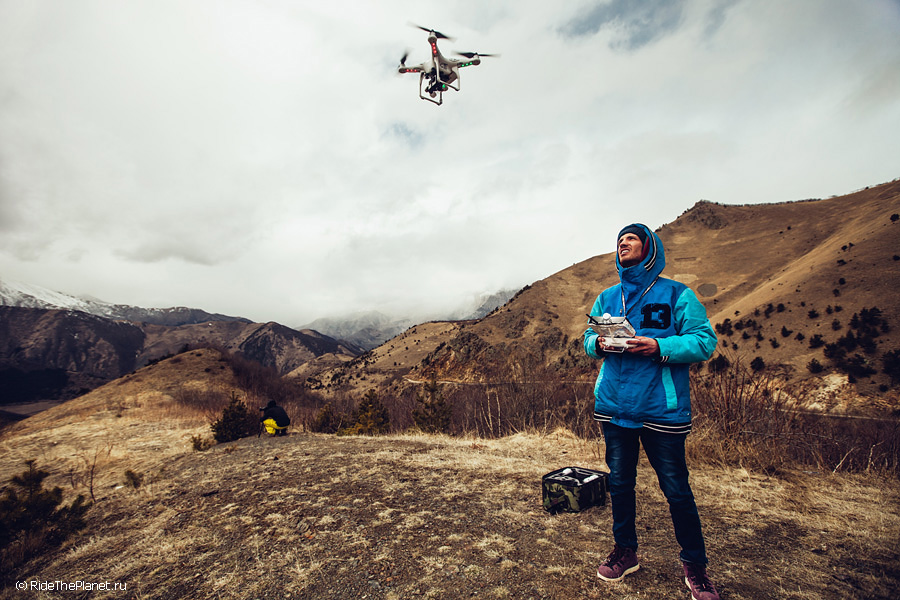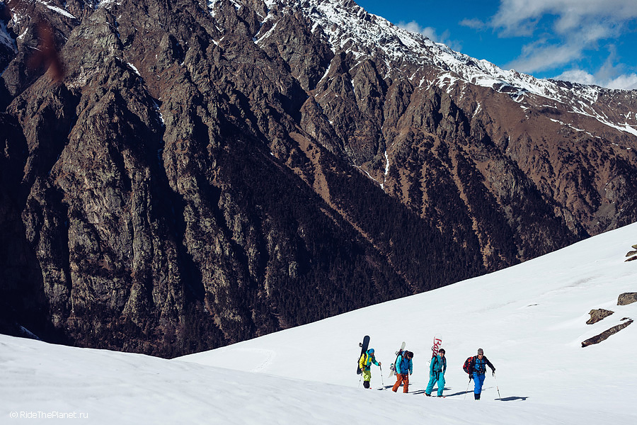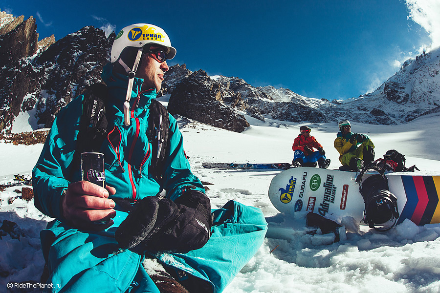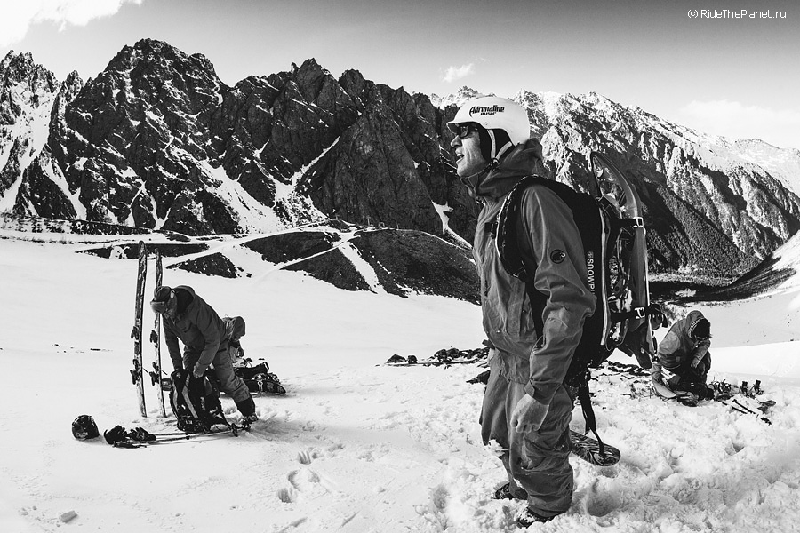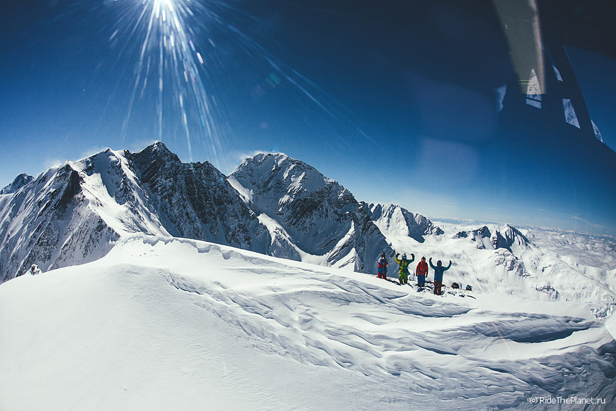 Команда RideThePlanet в Осетии: райдеры – Егор Дружинин, Константин Галат, Кирилл Анисимов и Иван Малахов, видеооператоры – Олег Колмовский и Борис Белоусов, фотограф – Сергей Пузанков, пилоты вертолетов — Арсений Болдырев и Александр Давыдов.
