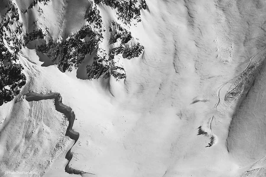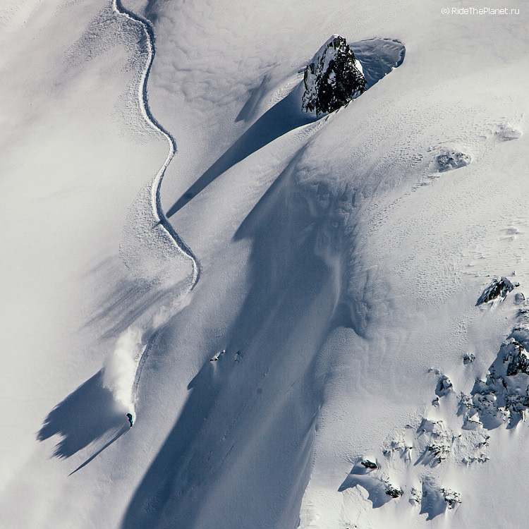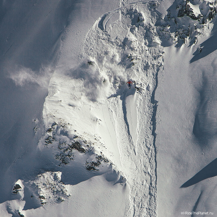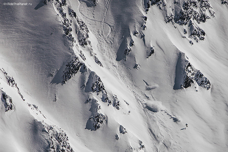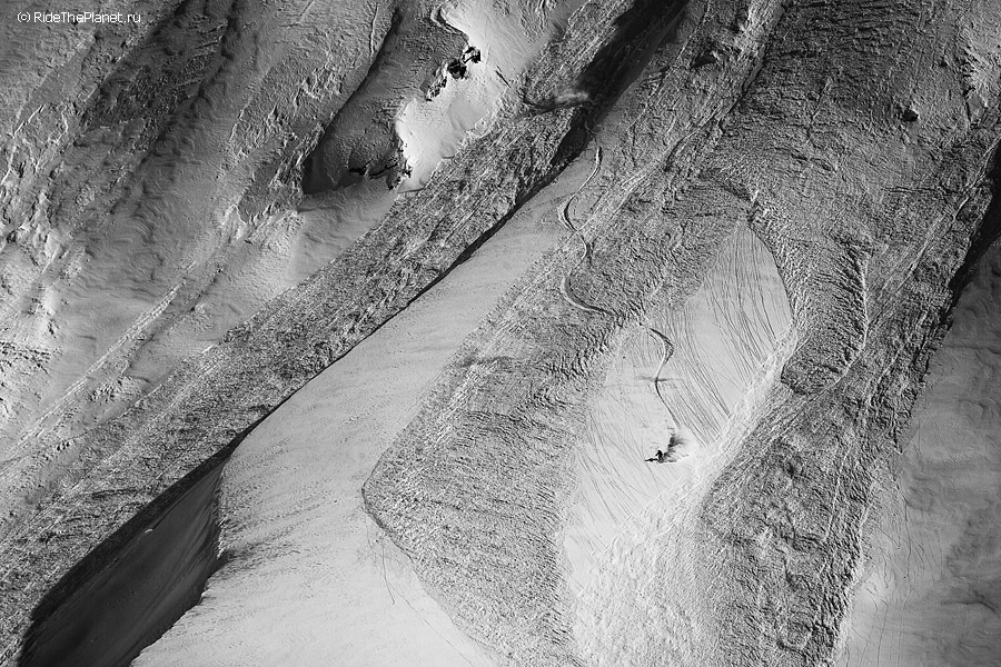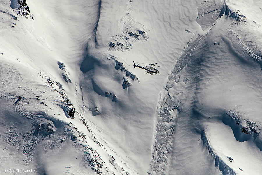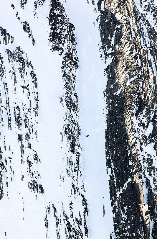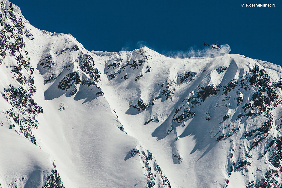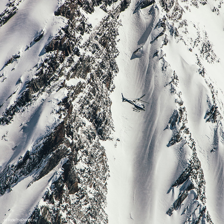 «От места нашего базирования до интересных зон катания в Осетии, подлетное время на вертолете обычно составляло примерно 10-12 минут. Мы старались выбирать для катания и съемок достаточно сложные рельефы, стенки и кулуары с перепадом 700-800 метров. Характер гор в этом районе достаточно суров, но разнообразен. Основные точки для вертолетных высадок при катании располагаются на высотах 3300 – 3500 метров, а вертикальные перепады спусков составляют от 700 до 1200 метров. Есть ледниковые зоны, но не столь обширные, как например в Приэльбрусье или Домбае на схожих высотах. Эти места еще ждут своего освоения в плане туризма, развития инфраструктуры. В какие-то районы, конечно, можно и сейчас забраться с помощью ски-тура, но подходы очень длинные. И пока – лучший способ насладиться этим диким уголком северного Кавказа остается вертолет. Возможно, на пенсии смогу прокатиться здесь на подъемнике