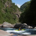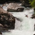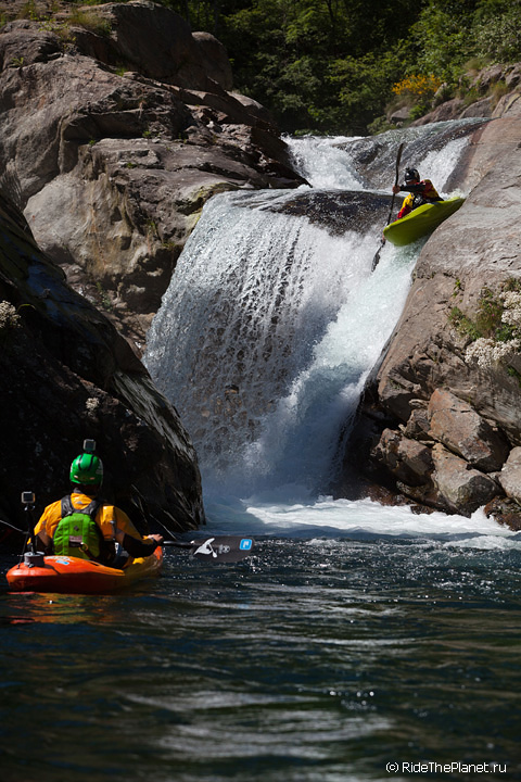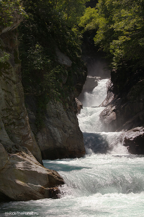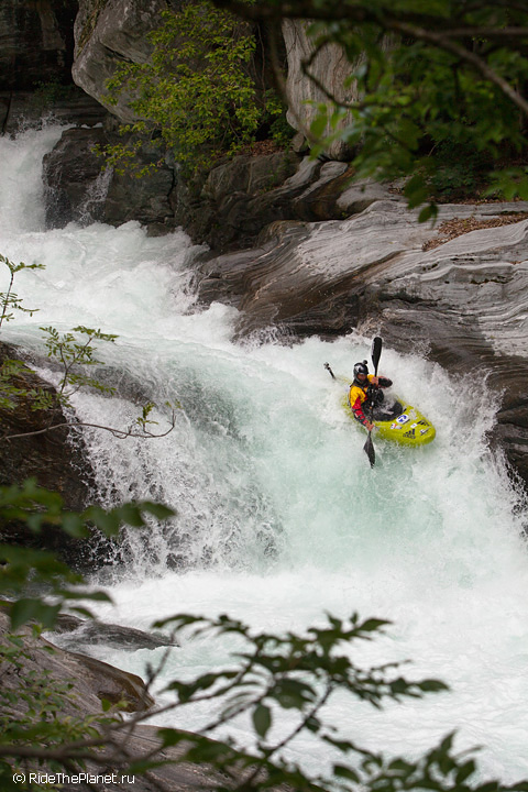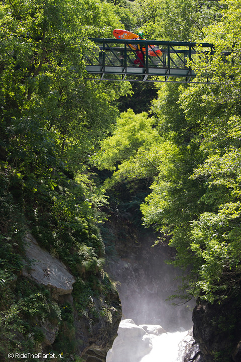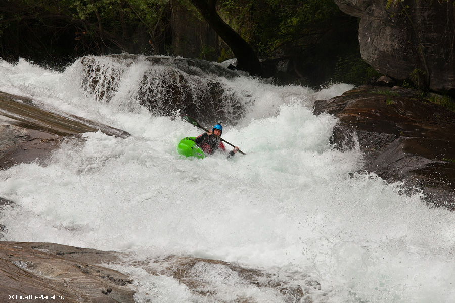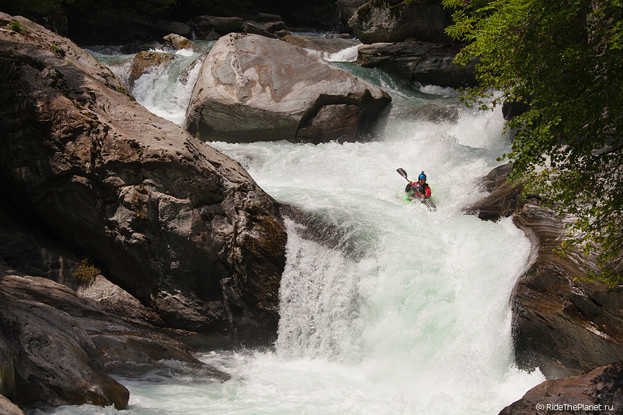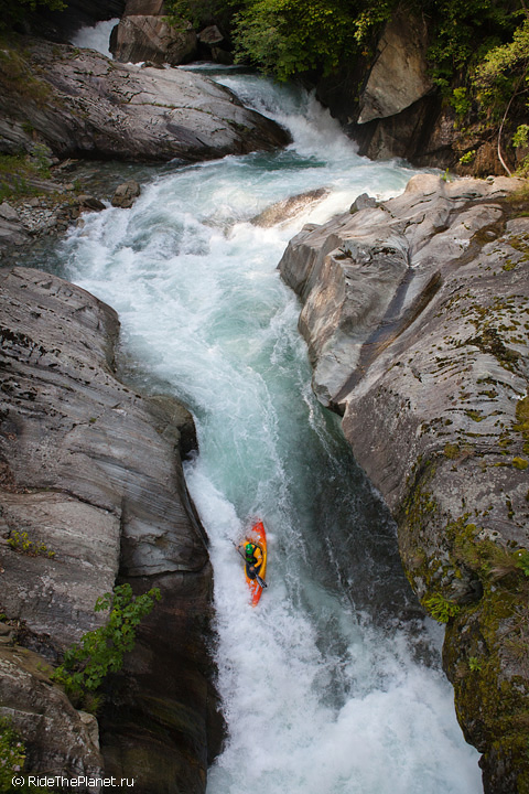 «В Valle d’Aosta в главную долину впадает несколько интересных крикинговых рек, довольно сложных и с небольшим расходом воды, а саму долину образует река Dora Baltea, берущая начало с ледников Монблана. На ней мы нашли несколько интересных сплавных секций и один глубокий каньон, Inferno. На берегах этого каньона растет виноград, из которого делают эксклюзивное красное вино с одноименным названием. Практически все возможные склоны и террасы долины Аосты покрыты виноградниками, и очень необычно видеть зеленеющие и цветущие склоны с высочайшими заснеженными вершинами Альп над ними. Очень здорово, что в Аосте нас сопровождала наша знакомая Anna Saudin, коренная вальдостанка, которая помогла нам увидеть и почувствовать прелесть этой альпийской долины!»