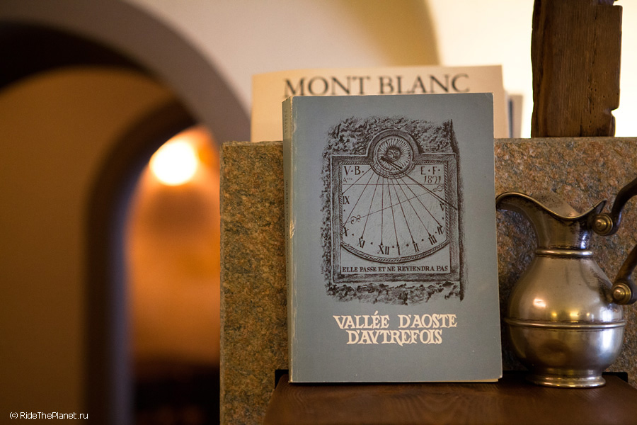 «В один из дней мы попали на обед к вальдостанскому графу — Камилло Россе, потомку древнего рода. В его фамильном доме мы отведали простой и натуральной пищи из местных продуктов, целиком выращенных в этой долине долине. Никто из нас не владеет итальянским, поэтому мы были сильно удивлены, узнав что между собой жители долины Аосты общаются на собственном языке, который хоть и похож на общепринятый итальянский, но обычный итальянец понять его не в силах».
