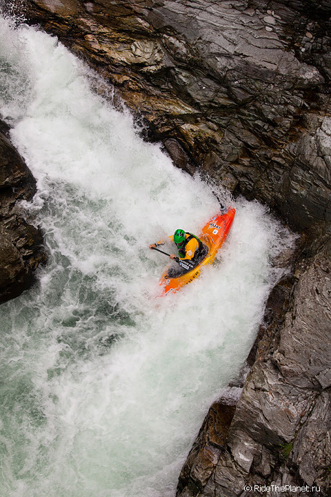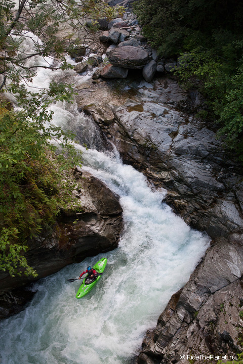Дмитрий Данилов: «В начале лета долина Сезии, или, как ее именуют местные, Valsesia, является одной из мекк европейского каякинга — в основную реку Сезия, образующую долину, стекаются десятки притоков, каждый из которых достоин внимания экстремальных каякеров со всего мира. Мы начали сплав с основных спотов на Сезии, которые запомнились большим количеством воды и мощными порогами. Далее команда перебралась на притоки — Egua, Gronda и Sorba, классику альпийского экстрим-сплава. На реке Sorba Егор Воскобойников и Алексей Лукин прошли знаменитый среди каякеров всего мира Devil's Slide – водопад в щели длиной порядка тридцати метров и с перепадом около пятнадцати».