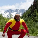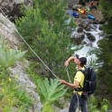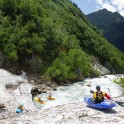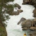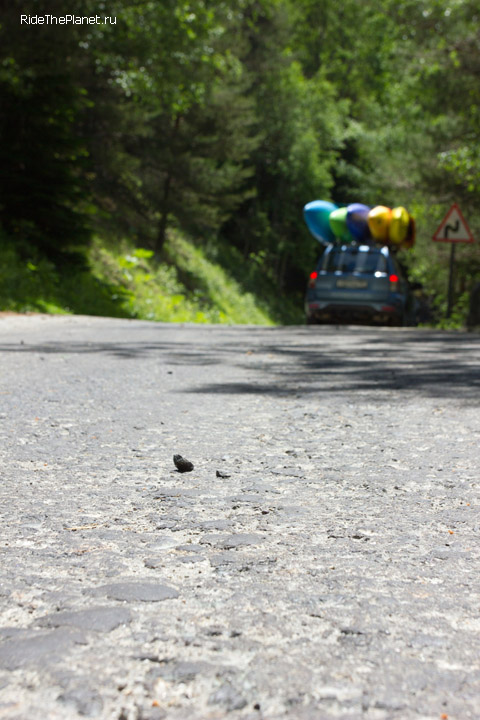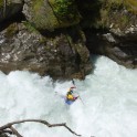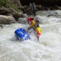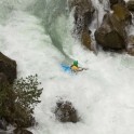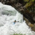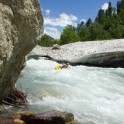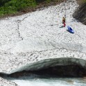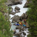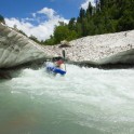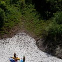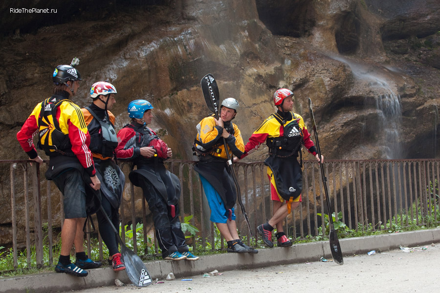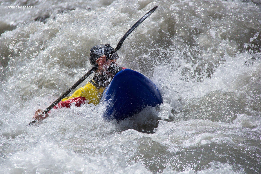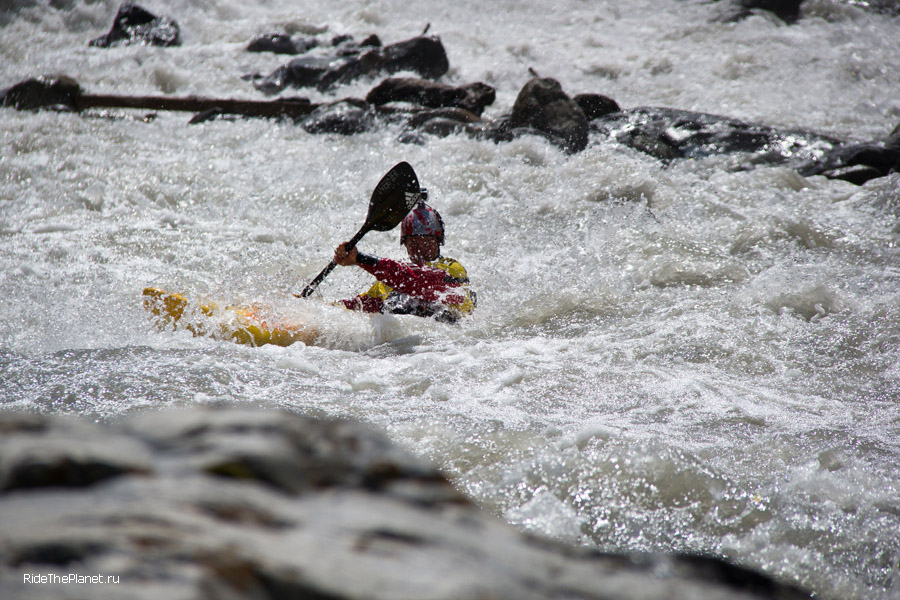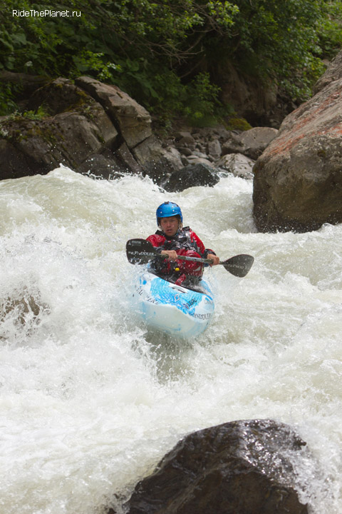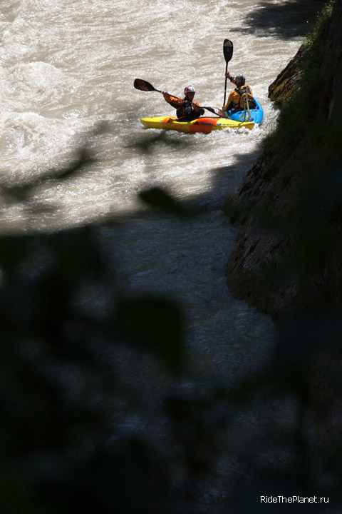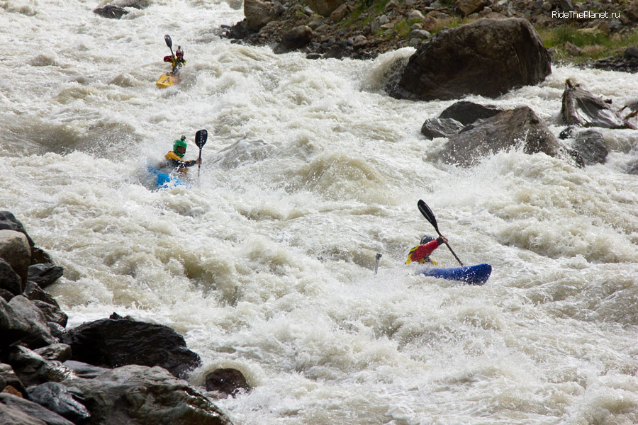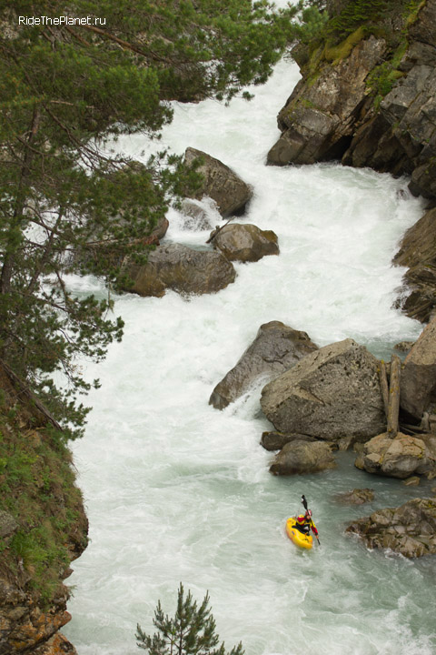 «Прибыв на место старта, — сообщает Дмитрий Данилов, — мы обнаружили, что река полностью перекрыта сошедшей со склона лавиной, проплыть под которой не представлялось возможным. Однако это не помешало начать сплав, а даже сделало его более веселым — райдеры стартовали прямо с лавины, по пути накручивая «спины» и прыгая сразу в начало основного порога на всем сплавном участке».