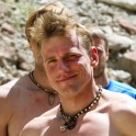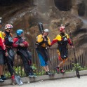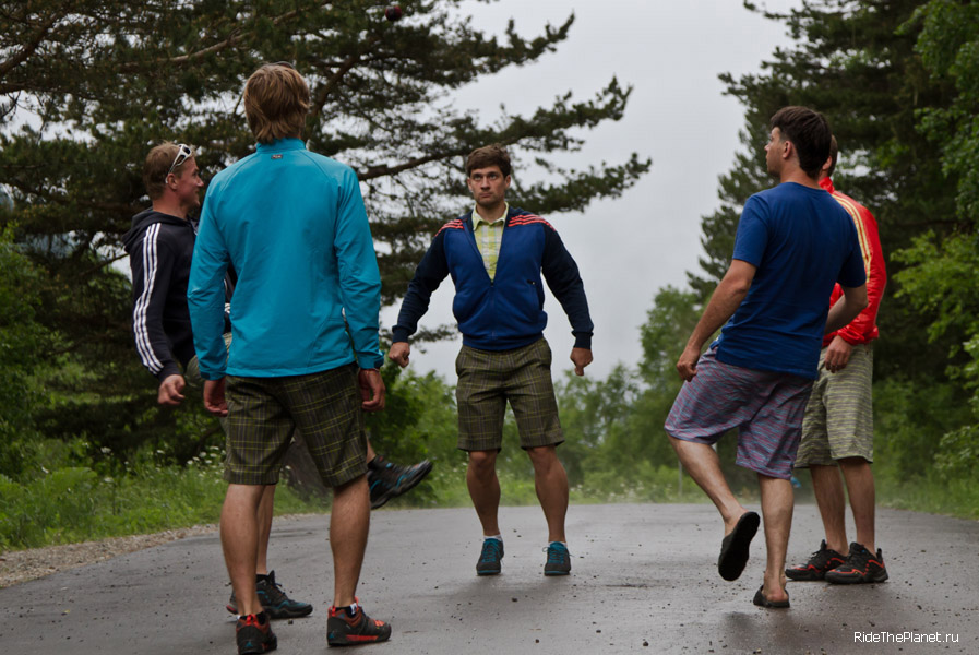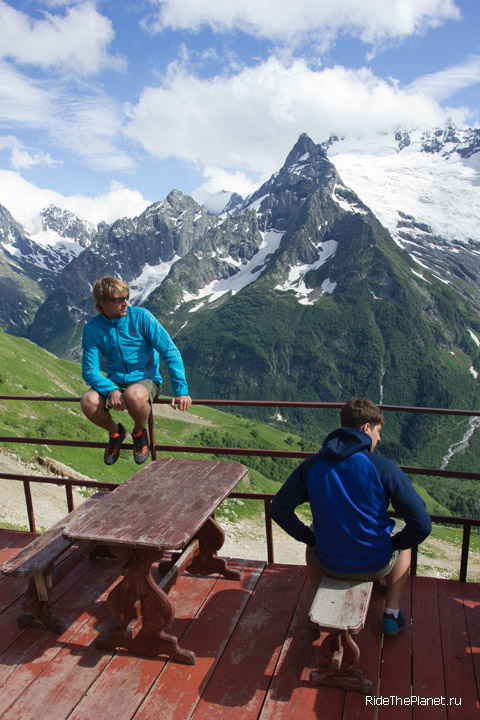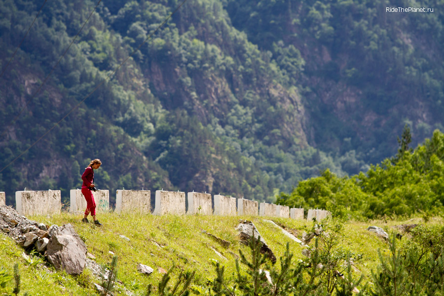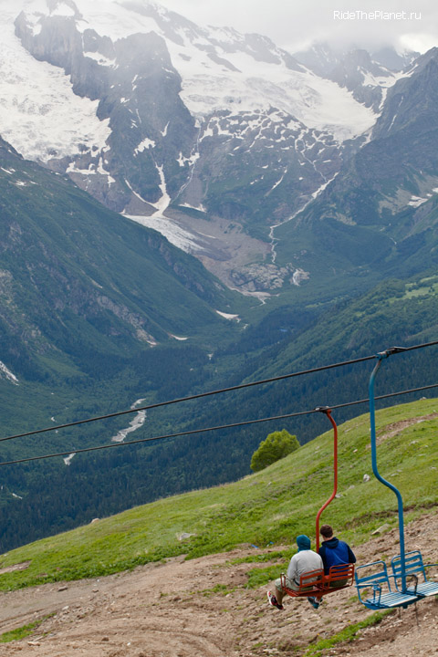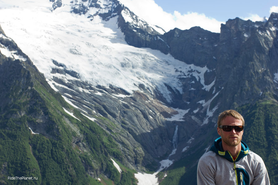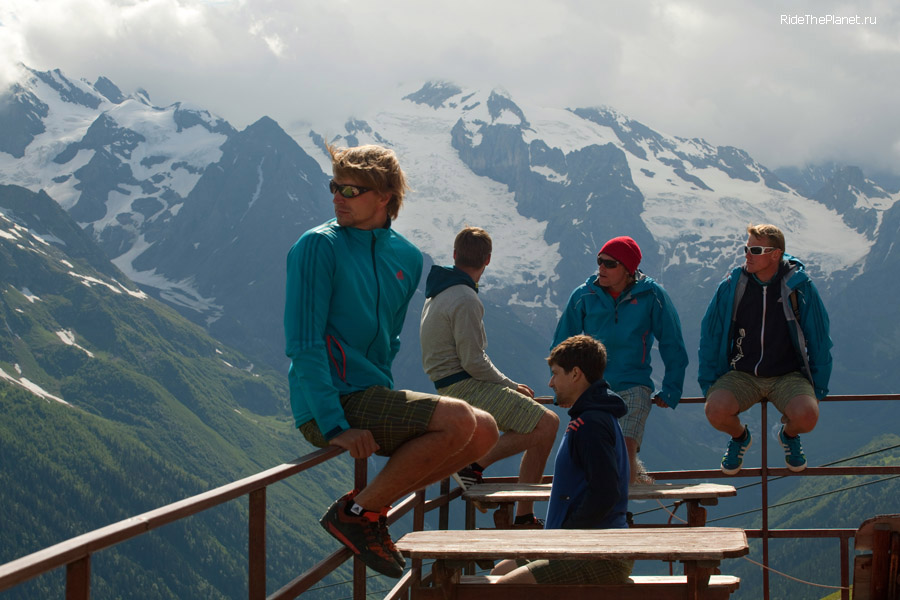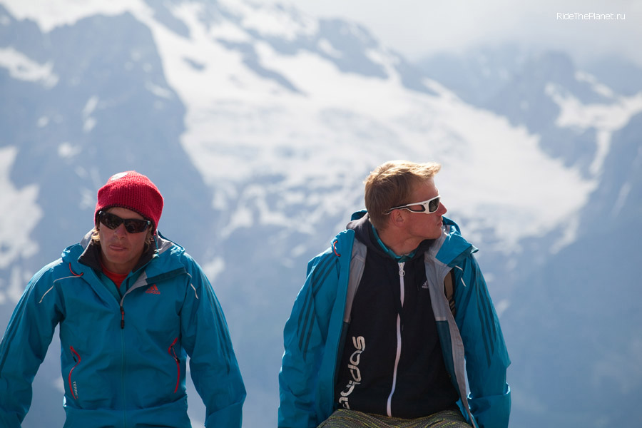 Иван Рыбников: «Лавина сошла прямо на начало участка «Раммштайн». За неделю до этого мы были в этом месте, и лавина была тогда раза в 2 больше, а сейчас было страшновато по ней ходить. Мы уже хотели скинуться, кто первый поедет по этой снежной горке, но тут приехала компания туристов из Подмосковья, которые все разом вышли на середину лавины и стали фоткаться на мобилки. Такой вид расслабил всех, и мы стали кататься по снегу кто во что горазд. Закончили все груповым прыжком и проходом «Раммштайна» после этого! Было весело — еще один солнечный день на Кавказе!»